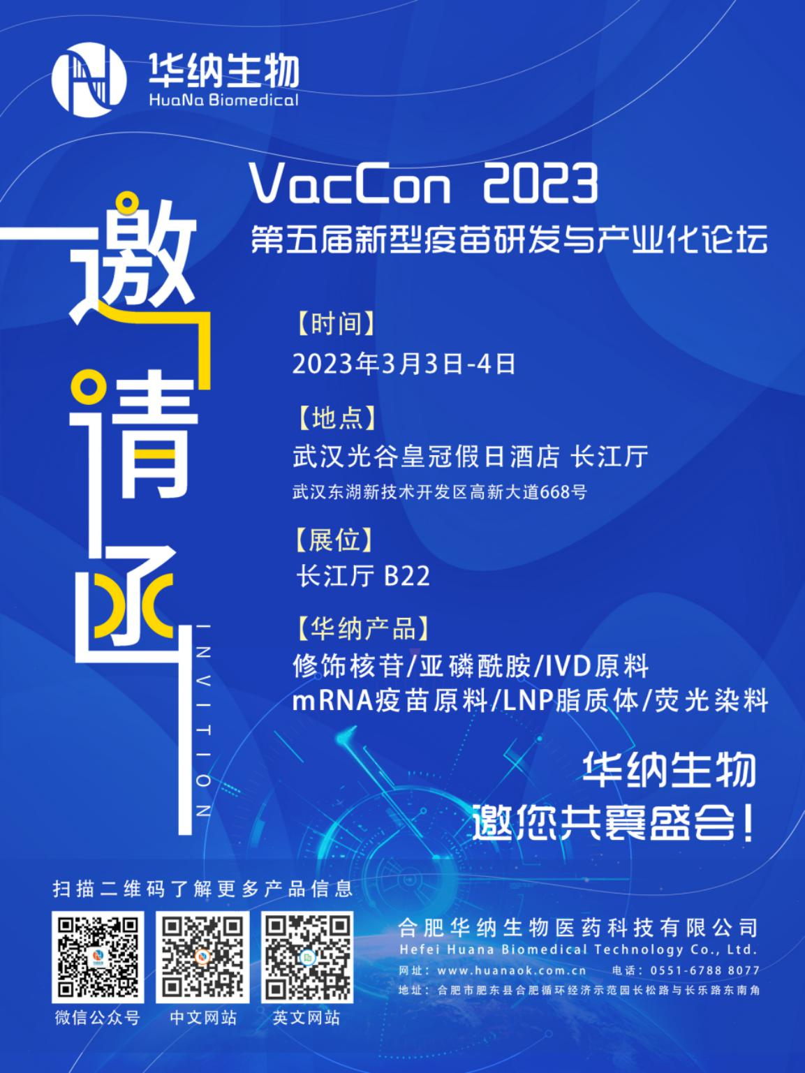 邀请函 | VacCon2023第五届新型疫苗研发与产业化论坛 华纳生物(展位号:B22)期待您的到来!