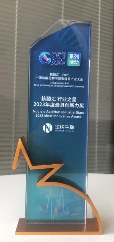现场,在核酸创新与产业发展上下游全产业链相关学者和业内人士的见证下,华纳生物凭借高质量小核酸药物和mRNA疫苗核心原料相关产品,在“核酸汇 行业之星”2023年度中国核酸药物与新型疫苗行业之星颁奖盛典上被评为“2023年度最具创新力”企业,华纳生物营销部经理上台领奖。
