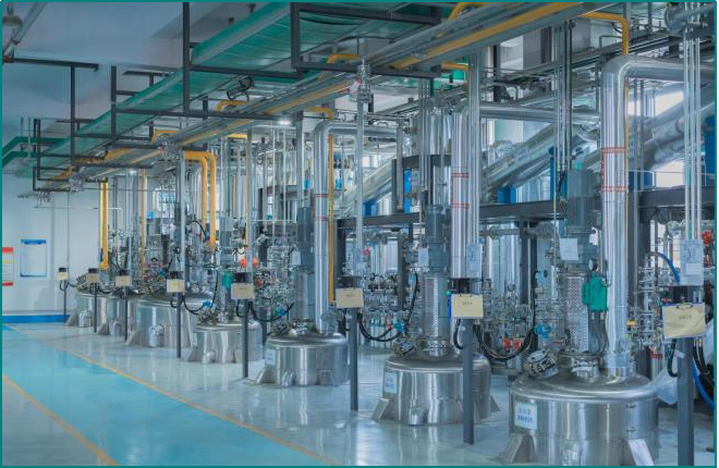 工厂目前拥有四个车间,制造中心一车间设计为多功能车间。1楼为类GMP的精烘包区,dNTP层析柱分离纯化、膜浓缩、过滤、灌装工序在1楼进行。2-5楼为合成、反应区,共拥有反应釜系统58套,拥有膜分离机、分离纯化柱、卧式离心机、平板离心机、真空干燥箱、双锥干燥机、冷冻干燥机、包装机等设备,并配有纯化水系统、压缩空气系统、高纯氮气系统、真空系统等辅助设备设施。